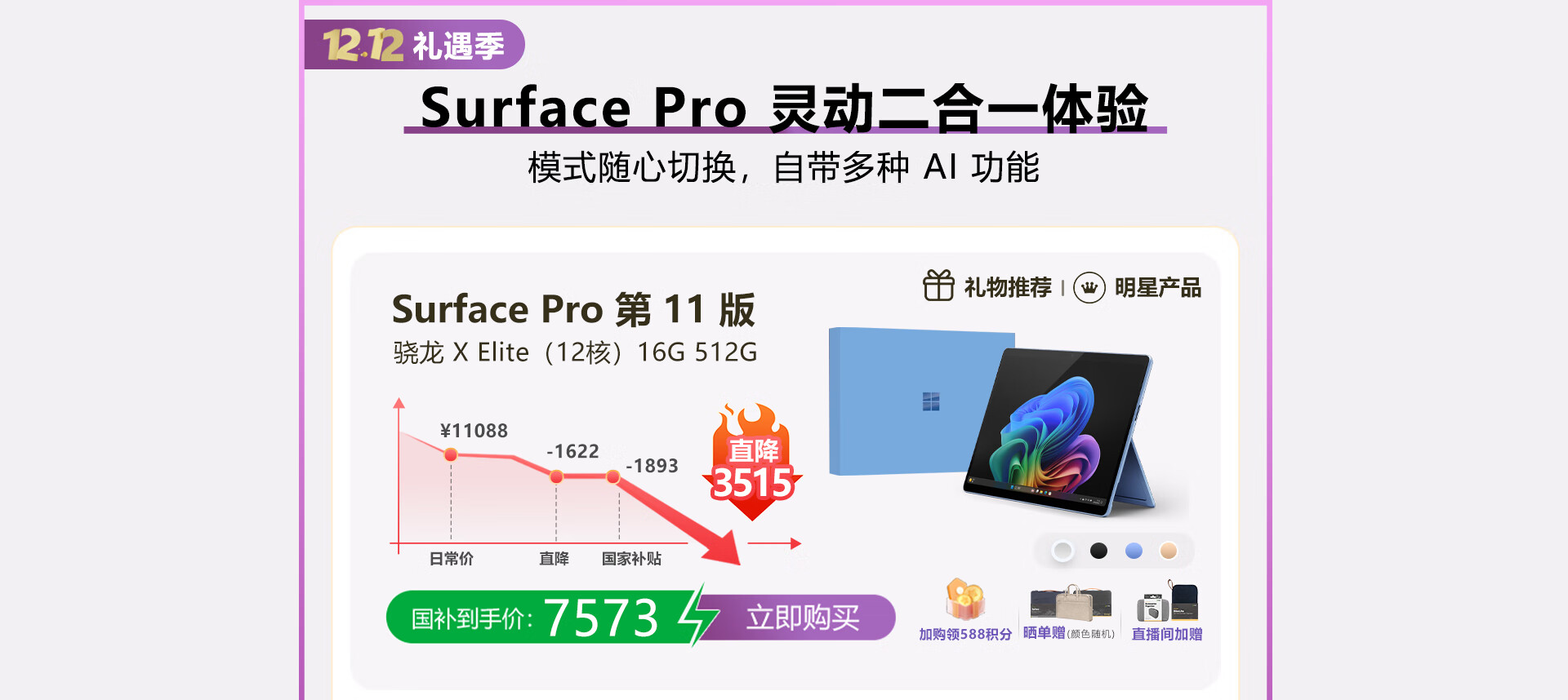 Surface Pro,12英寸 (国补套装)